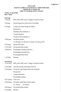 Jamuan Raya Aidilfitri 2026 akan berlangsung pada 8 April 2026 di Dewan Seri Tun Habab pada jam 10.00 pagi.